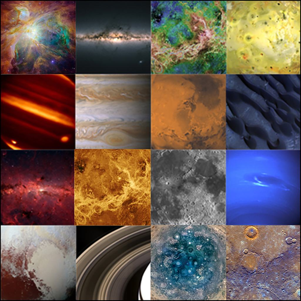 There are wondrous sights beyond our world. This 16-piece collection contains stylized versions of some of the best planetary and astronomical imagery ever returned by spacecraft and telescope.