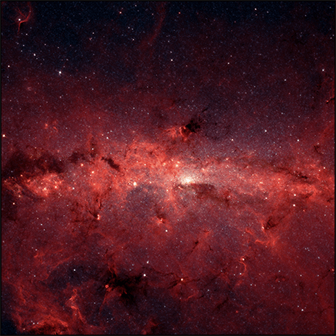 Stylized false-color, infrared image of the Milky Way galaxy.