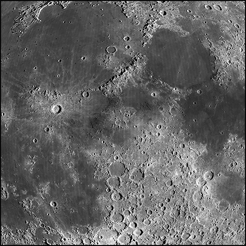 Our Moon’s surface consists of bright, heavily cratered highlands and dark, smooth lava-filled lowlands.