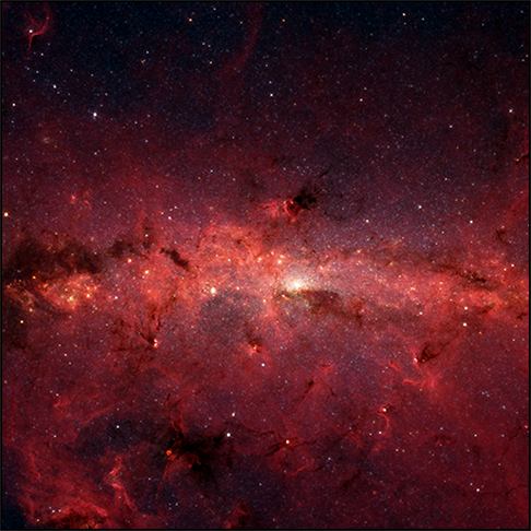Stylized false-color, infrared image of the Milky Way galaxy.