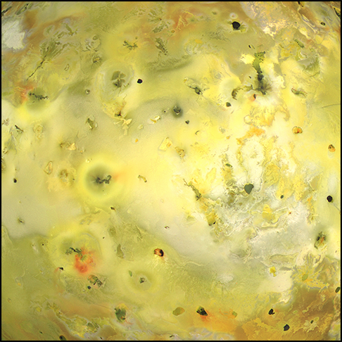 One of Jupiter’s moons, Io is very volcanic. Its yellow, sulfur-covered surface has hundreds of volcanoes.