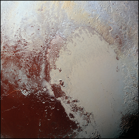 The largest known dwarf planet, Pluto has a large icy, heart-shaped plain and highlands red from methane snow.
