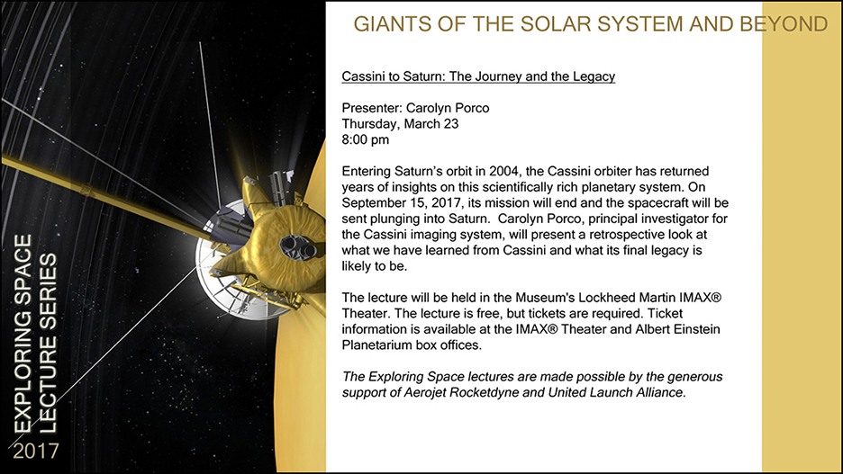 The exhibit displays were not only used to show exhibit slides, but also promotional slides to advertise upcoming programs and talks, and used for live PowerPoint presentations given by researchers from the Center for Earth and Planetary Studies.