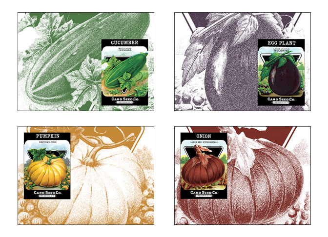 The pieces in this collection were created using seed packet illustrations. This was one of the first times I experimented with public domain imagery. I created these pieces specifically for reusable shopping bags.